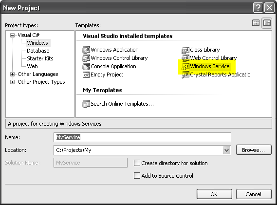 - یک پروژه جدید در Visual Studio از نوع Windows Service ایجاد کنید